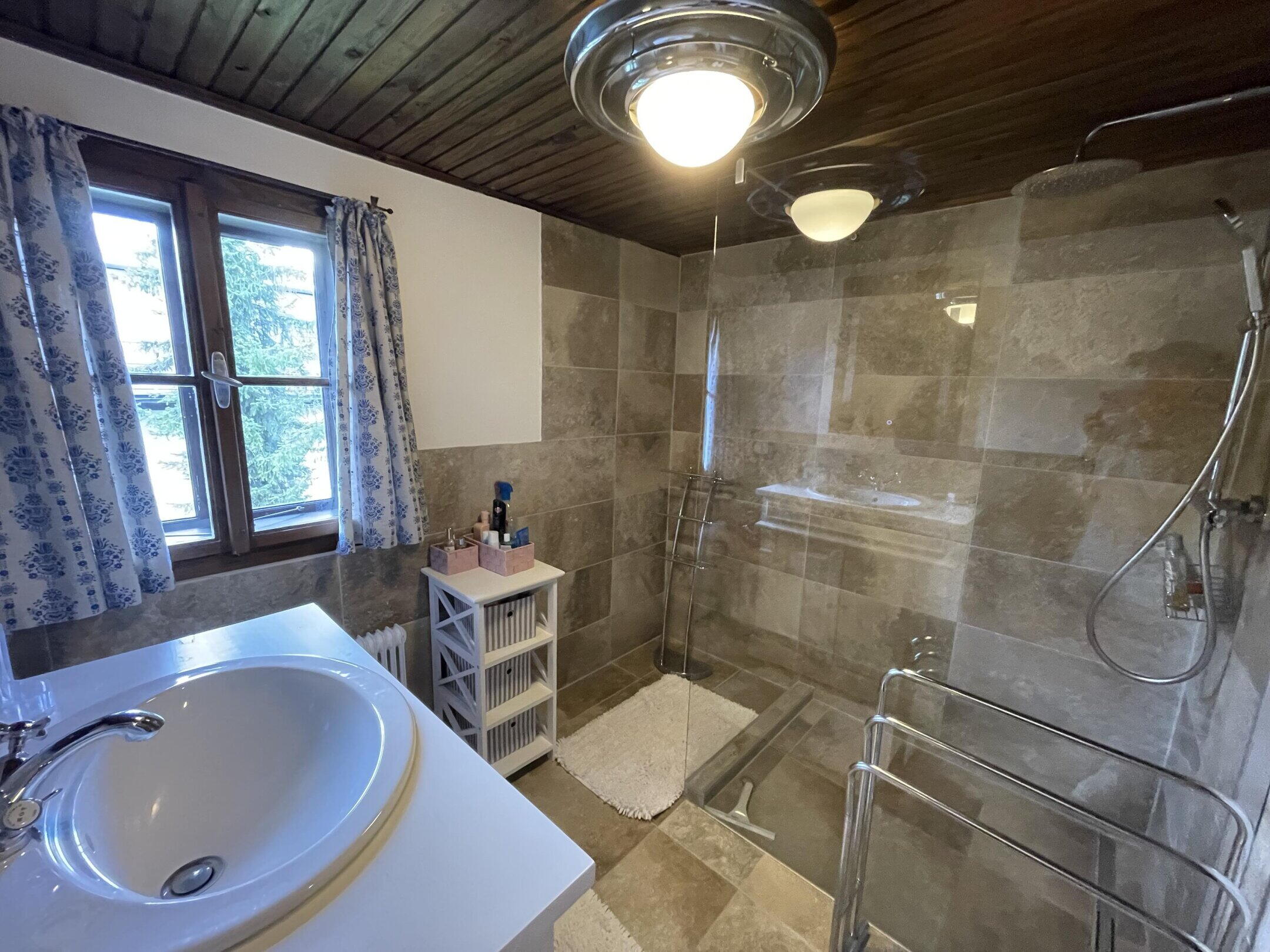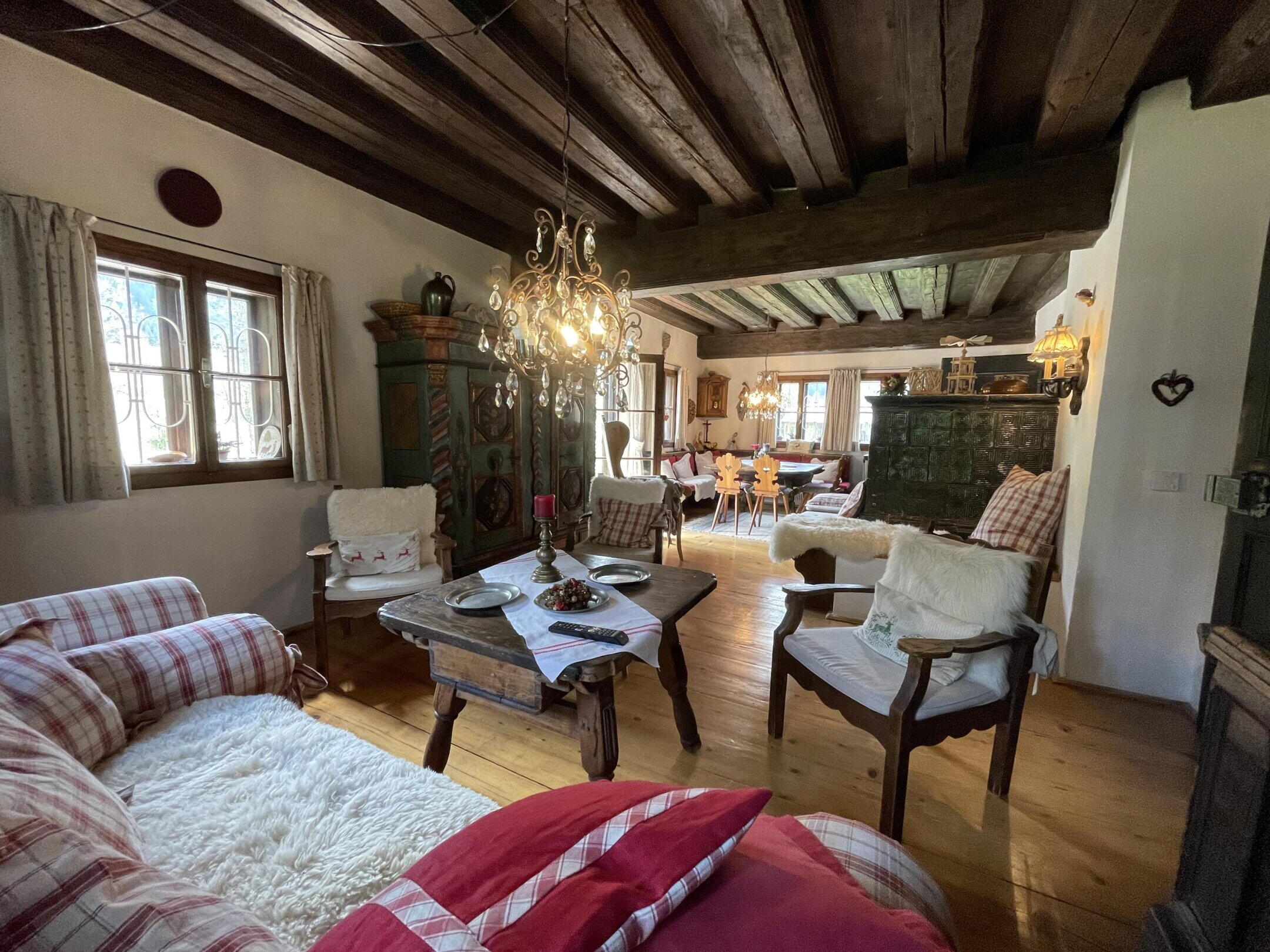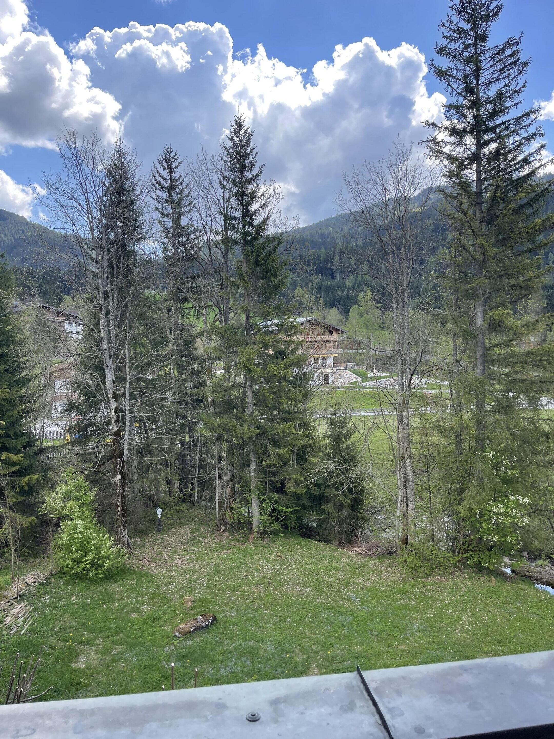 huis ligt op een licht aflopend perceel (op een hoogte van ca. 1.011 m) met uitzicht op het dorpscentrum en de